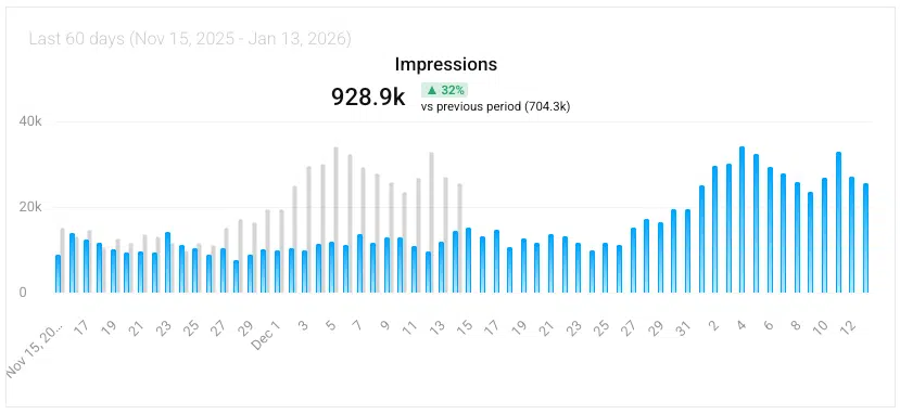 You can see that after Christmas Day, the number of impressions that these ads were getting jumped significantly – the budget remained unchanged from December, yet it’s generating nearly double the impressions.